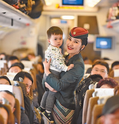 在蘭新高鐵D8803次列車上,乘務(wù)員與旅客互動(dòng)。擺風(fēng)亮攝(影像中國(guó))