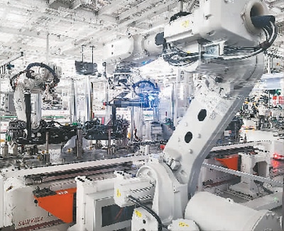 在繁榮廠區(qū),這樣的工業(yè)智能機器人還有很多,通過機器人間的協(xié)作,實現(xiàn)整車前后風(fēng)擋玻璃、輪胎、座椅等全自動裝配,機艙管路、胎壓等實現(xiàn)在線全自動檢測。焊裝車間自動化率達到100%,涂膠自動化率達到97%,總裝自動化率達到30%。