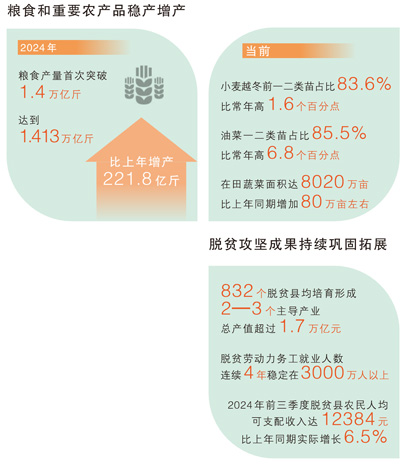 2024年,我國糧食和重要農產品實現(xiàn)穩(wěn)產增產。