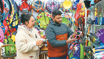 結(jié)束在哈爾濱的旅行,秦女士帶著一套4只杯子回到北京,每只杯子的蓋子上裝飾各不相同,分別是豬、狍子、大鵝和熊。“它們合稱‘龍江F4’?!鼻嘏啃χ榻B,在哈爾濱冰雪大世界文創(chuàng)打卡地(文創(chuàng)禮品店)一見到這套杯子,她就被它們可愛的形象以及濃郁的東北特色吸引了。哈爾濱冰雪大世界文創(chuàng)打卡地里共有五大系列200多款商品,包括冰箱貼、折扇、擺件、手套等?!斑@些文創(chuàng)產(chǎn)品融合了冰雪文化和東北地域特色,既美觀、有新鮮感,也很實(shí)用?!鼻嘏靠滟澋?。