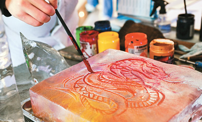 第九屆亞冬會(huì)期間,運(yùn)動(dòng)員體驗(yàn)拓彩冰雪畫。