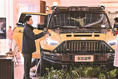 江西省南昌市構(gòu)建集智能網(wǎng)聯(lián)、銷售服務(wù)于一體的商超新能源汽車業(yè)態(tài)圈,促進地方新能源汽車消費。圖為顧客在南昌市紅谷灘區(qū)的一家大型商場的汽車展示銷售區(qū)咨詢選購新能源汽車。