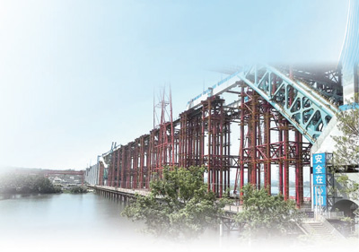 工人在橋面進(jìn)行焊接作業(yè)。