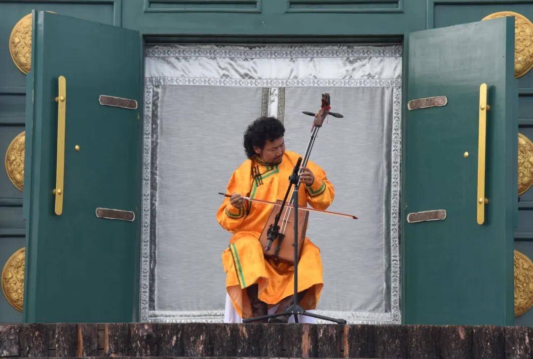 蒙古族非遺節(jié)目組合、二人臺歌舞《掛紅燈》、馬頭琴獨奏等具有強烈草原符號的節(jié)目使現(xiàn)場高潮不斷。現(xiàn)場烏蘭圖雅深情誦讀《敕勒歌》引來陣陣掌聲。
