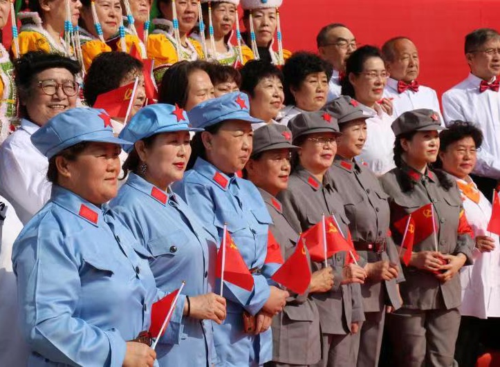 4月9日,由中共呼和浩特市委宣傳部、呼和浩特市文化旅游廣電局共同主辦的“永遠(yuǎn)跟黨走”——慶祝中國共產(chǎn)黨成立100周年呼和浩特市“大家唱”合唱節(jié)暨廣場舞展演活動(dòng)在首府青城公園舉行。此項(xiàng)活動(dòng)是“永遠(yuǎn)跟黨走”—慶祝中國共產(chǎn)黨成立100周年群眾性文化活動(dòng)的一項(xiàng)重要內(nèi)容,也是呼和浩特市文化旅游廣電局黨史學(xué)習(xí)教育活動(dòng)“為民辦實(shí)事”的重要文化舉措?;顒?dòng)現(xiàn)場由100人合唱團(tuán)表演曲目《歌唱祖國》、《社會(huì)主義好》、《沒有共產(chǎn)黨就沒有新中國》,100人展演廣場舞《我和我的祖國》、《點(diǎn)贊新時(shí)代》、《站在草原望北京》?,F(xiàn)場氣氛熱烈,廣大市民們揮舞著國旗,紛紛參與到活動(dòng)中,凝聚起內(nèi)蒙古各族人民守望相助,同心向黨的強(qiáng)大精神力量,凝聚起中華兒女同心共筑中國夢(mèng)的磅礴力量。