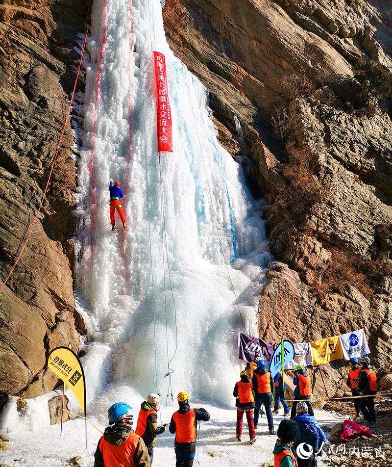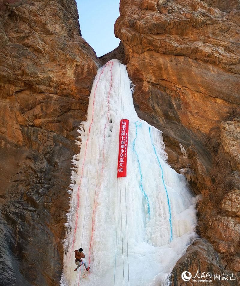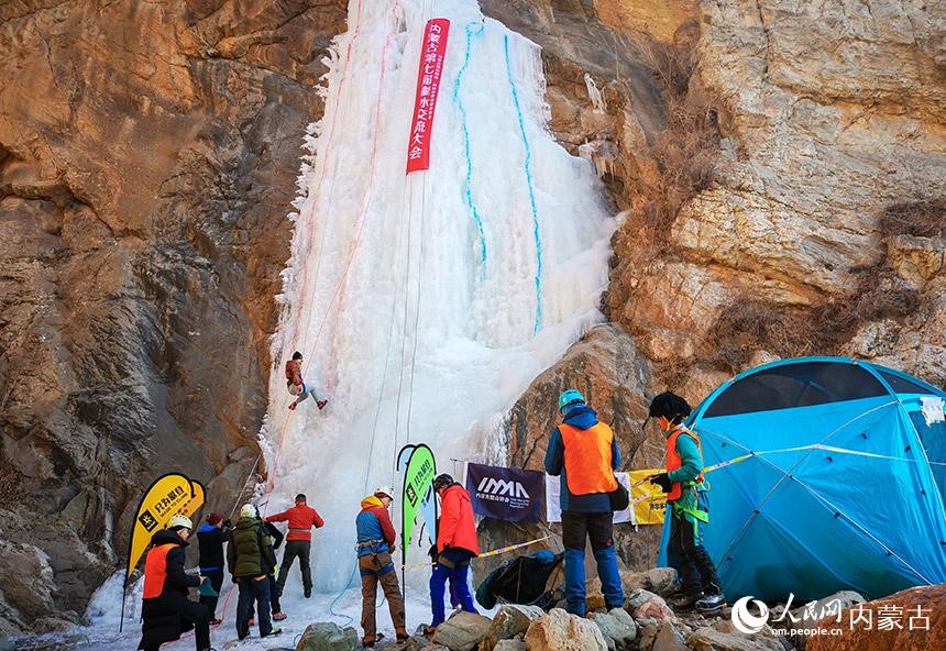 1月16日,由內(nèi)蒙古登山協(xié)會、內(nèi)蒙古攀巖攀冰協(xié)會聯(lián)合舉辦的內(nèi)蒙古第七屆攀冰交流大會在包頭市土默特右旗舉行,來自內(nèi)蒙古各地的攀冰愛好者和戶外運動愛好者在晶瑩剔透的冰瀑上挑戰(zhàn)自我,感受極限運動帶來的樂趣。(丁根厚)