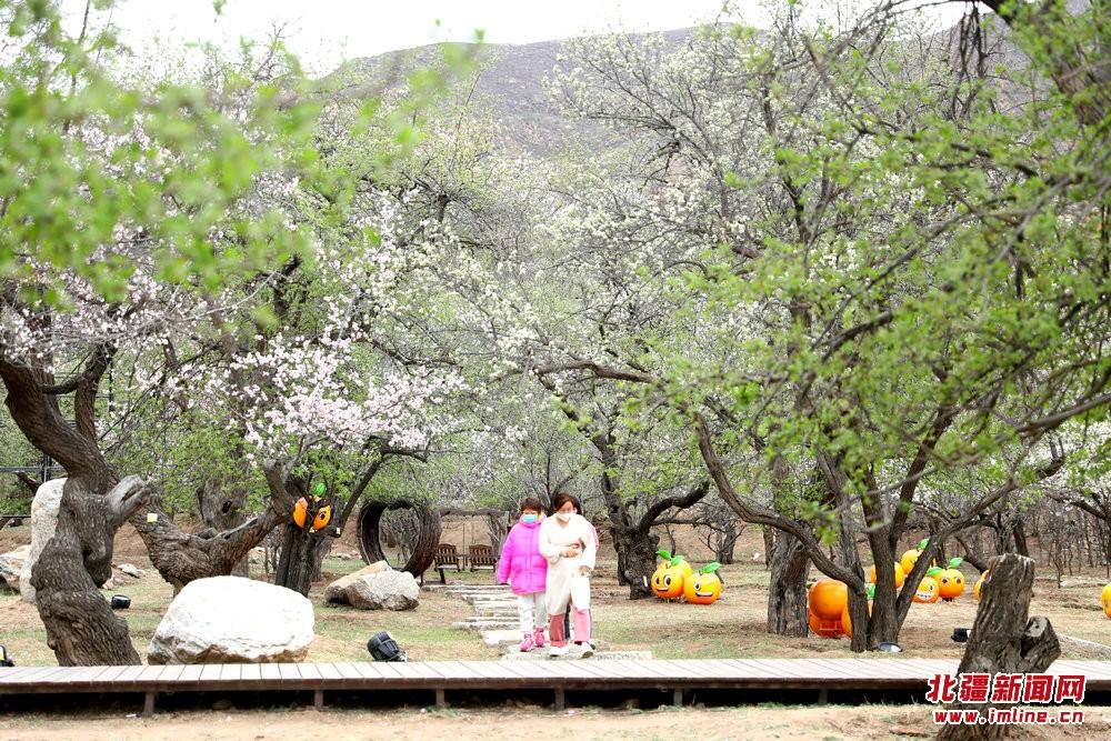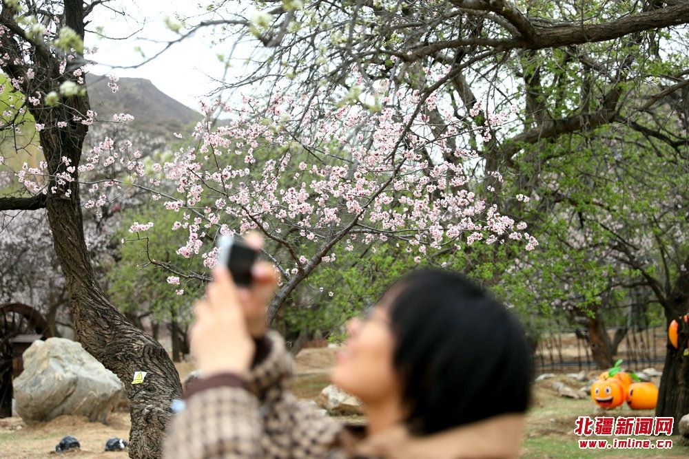 游人在烏素圖老杏園內(nèi)拍照打卡