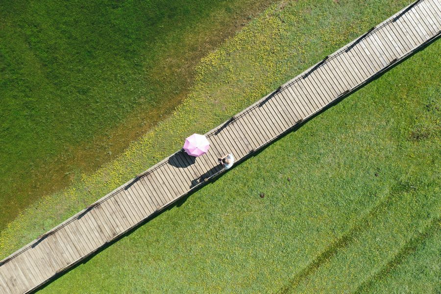 來自湖南省的游客王瑩舉起手機不停拍攝,她說:“這是我第二次來烏海了,第一次來烏海看了烏海湖,回去了還想來,這不和朋友又來了。遠處的沙漠與湖水相互交融,搭配著音樂,這種前所未有的體驗讓我特別喜歡?!薄斑@是我第一次來烏海,正好趕上了‘沙漠看?!魳窌?,特別有感覺?!鄙轿魇∮慰椭x紅平說。