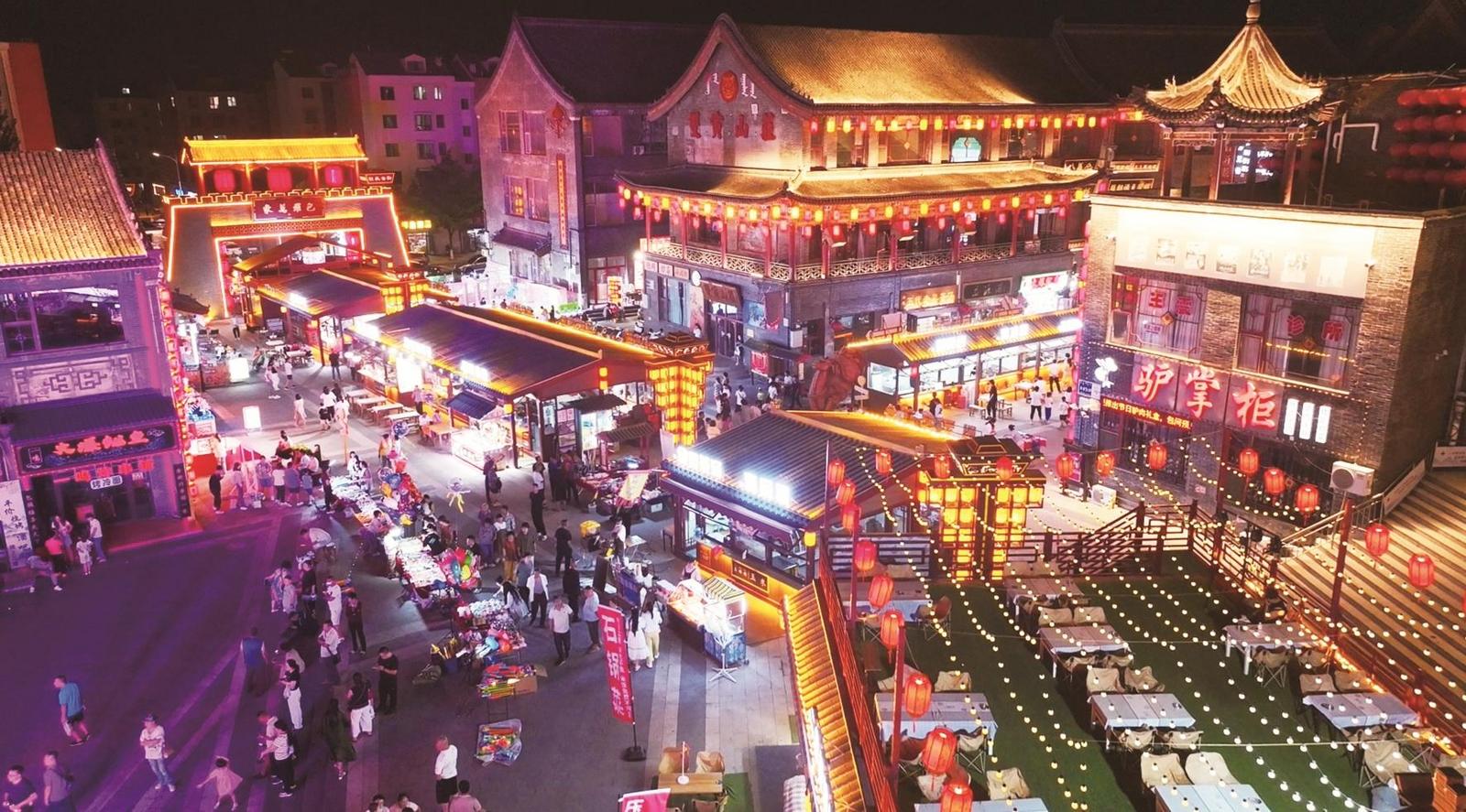 初秋的包頭金街,暮色剛合,就被燈火點(diǎn)成不夜天。飛檐翹角的古建輪廓,讓紅燈籠串成的光瀑,沿著青磚黛瓦淌下來,裹著孜然香、奶茶甜,往人衣襟里鉆。