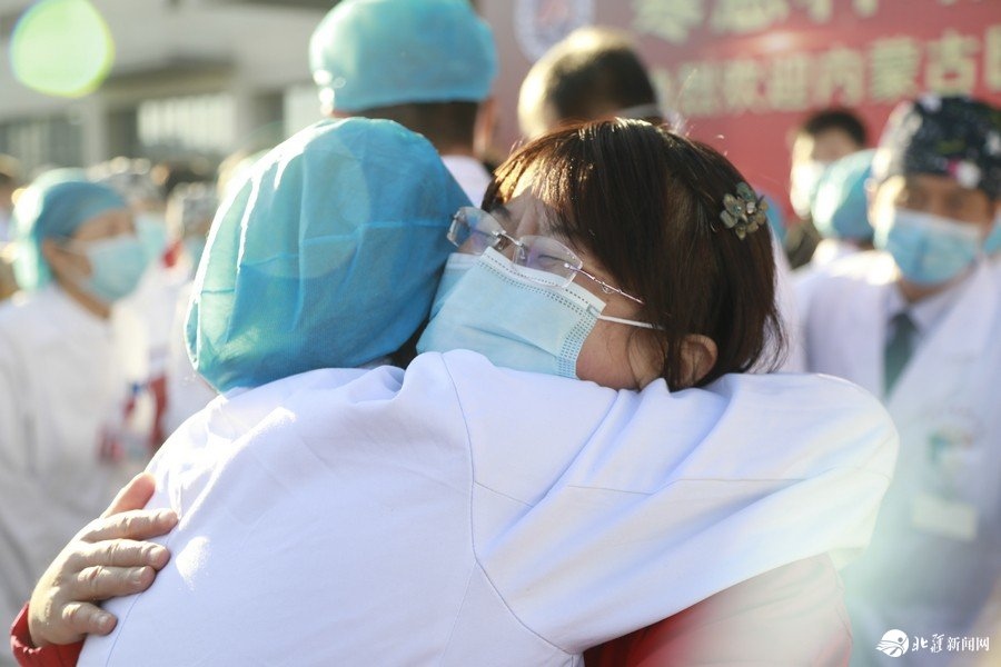 “終于把你們盼回來(lái)啦!”家人、同事們熱情擁抱,喜極而泣,歡迎“白衣戰(zhàn)士”平安歸來(lái)。