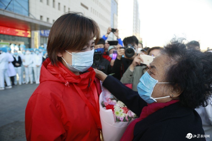 下午1點(diǎn)30分,附院醫(yī)療隊(duì)隊(duì)員與共同奮戰(zhàn)了60多天的區(qū)內(nèi)其他醫(yī)院隊(duì)員告別,乘車踏上回家的征程。