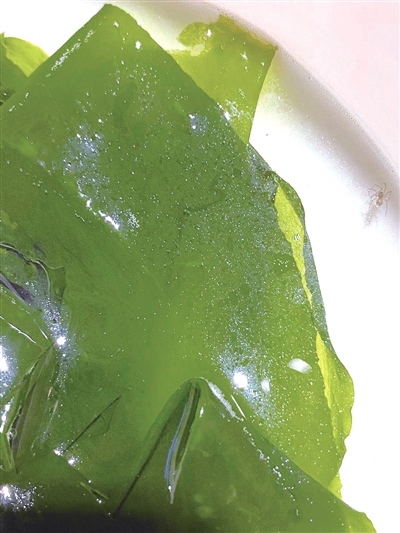 據(jù)劉女士回憶,8月9日晚,她和女兒到鄂爾多斯市伊金霍洛旗額爾敦傳統(tǒng)涮(伊旗店)吃飯,母女二人正吃得暢快之際,突然發(fā)現(xiàn)在一盤海帶里有一只蜘蛛(如圖),在盤子里爬來爬去,看見這一幕,母女二人胃口全無。隨即,劉女士和服務(wù)人員進行了溝通。
