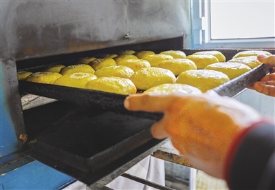 常三文不僅僅會做月餅,他的作坊還制作各式各樣的糕點,由于臨近中秋節(jié),目前月餅成為最暢銷的品種?,F(xiàn)在常三文的作坊里每天做出的月餅達1200斤左右,大都銷往周邊地區(qū)。“說不累是假的,但是這門手藝已經(jīng)傳了好幾代了,不但能謀生,還能傳承非遺文化,這也是很讓人自豪的事情。”常三文笑著說道。