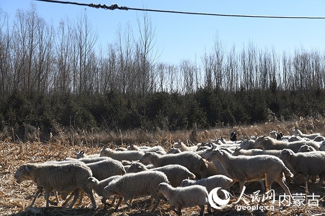 內(nèi)蒙古初冬,暖陽微燥。牧民楊寶寶的100多只羊正在院子前的空地上曬太陽。雪白的羊群映得小院磚明瓦亮。楊寶寶說話時,嘴角總是上揚的,黝黑的皮膚上笑出深深的褶子。
