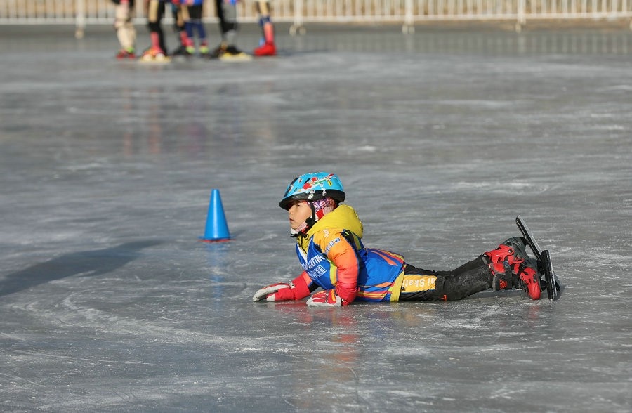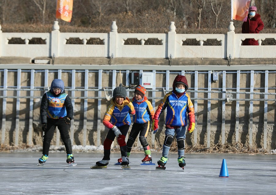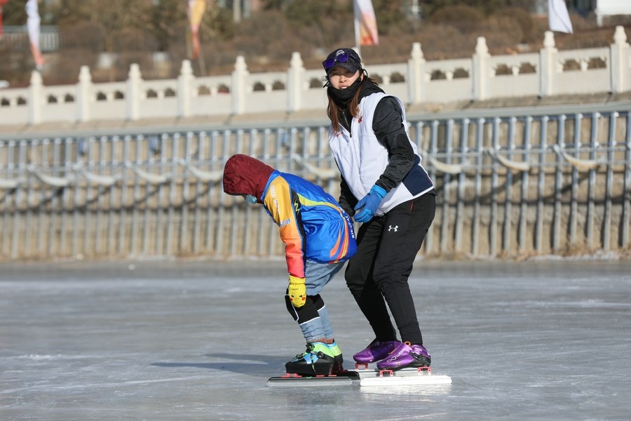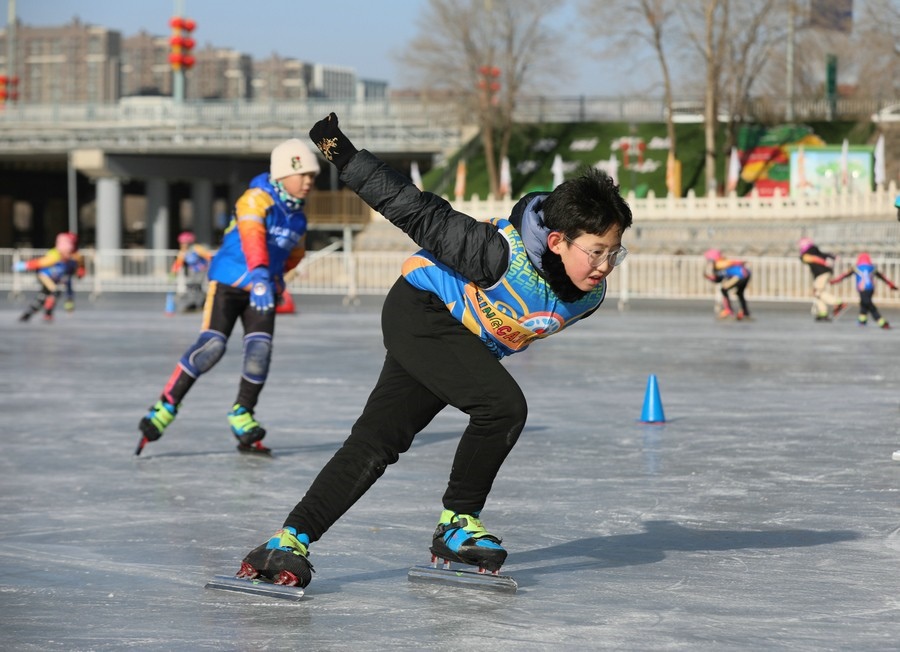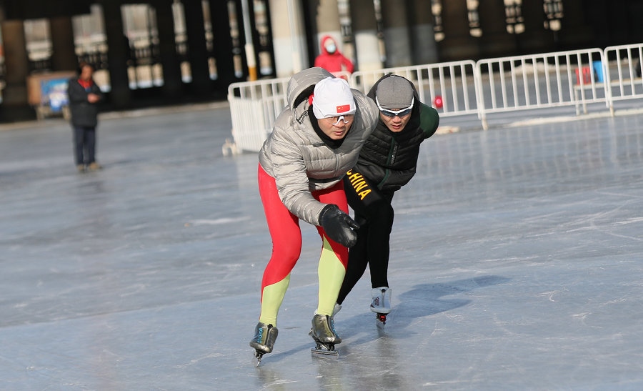 冰雪愛好者在東河冰雪場(chǎng)滑冰