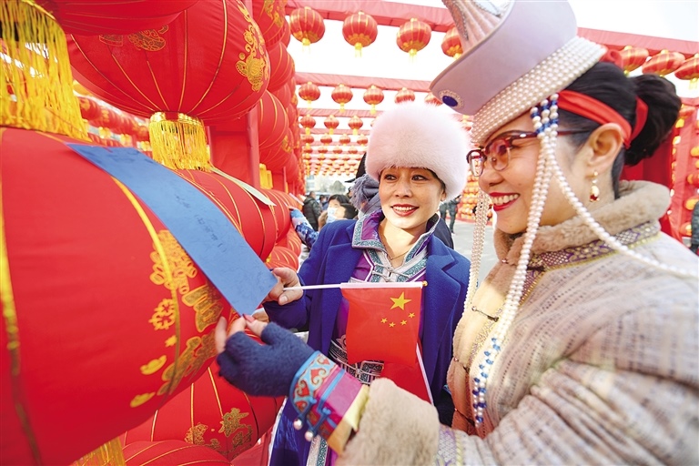 2月14日,呼和浩特市民猜燈謎,迎接元宵節(jié)。 記者 王磊 攝