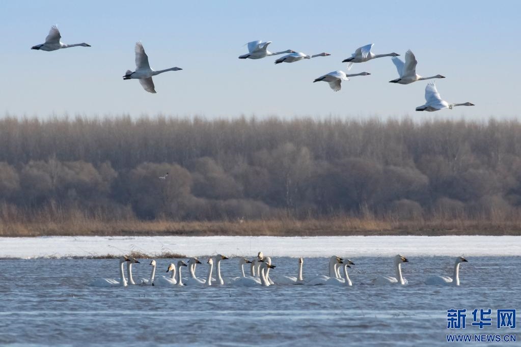 小天鵝翔集科爾沁國家級自然保護(hù)區(qū)。(王永生 攝)