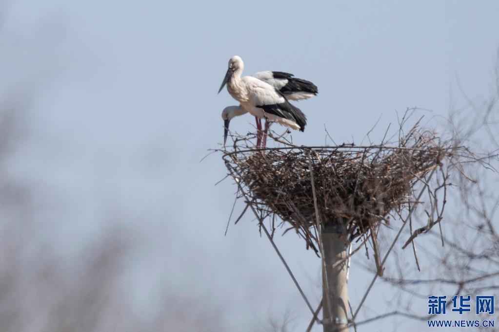 在科爾沁國家級自然保護(hù)區(qū),上千只候鳥在湖面和蘆葦中,時而覓食嬉戲,時而閑庭信步,如精靈般舞步翩躚。工作人員在監(jiān)測中發(fā)現(xiàn),國家一級保護(hù)鳥類丹頂鶴、白鶴、白枕鶴、東方白鸛,國家二級保護(hù)鳥類白琵鷺、小天鵝、灰鶴以及10多種雁鴨類候鳥陸續(xù)飛抵。尤其是中斷約22年未在保護(hù)區(qū)內(nèi)筑巢繁殖的國家一級保護(hù)鳥類東方白鸛,也開始在保護(hù)區(qū)內(nèi)安營扎寨,筑巢繁殖。