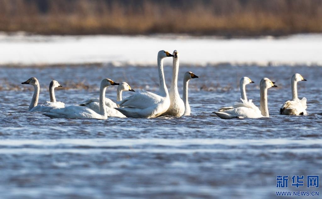 小天鵝在科爾沁國家級自然保護(hù)區(qū)內(nèi)嬉戲。(朱浩宇 攝)