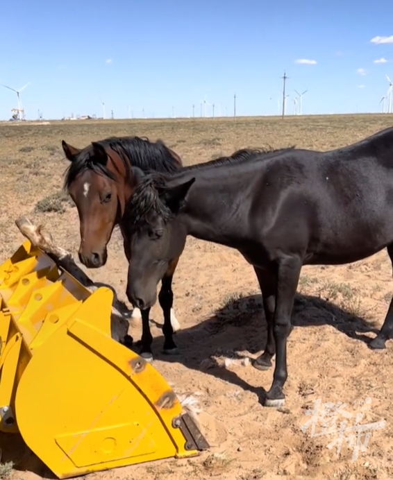 橙柿互動(dòng)留意到,視頻內(nèi)容顯示:一匹老馬躺在車斗里,車前車后,有兩匹馬兒在圍追這輛鏟車,甚至擋住車斗,鏟車被迫多次停下。