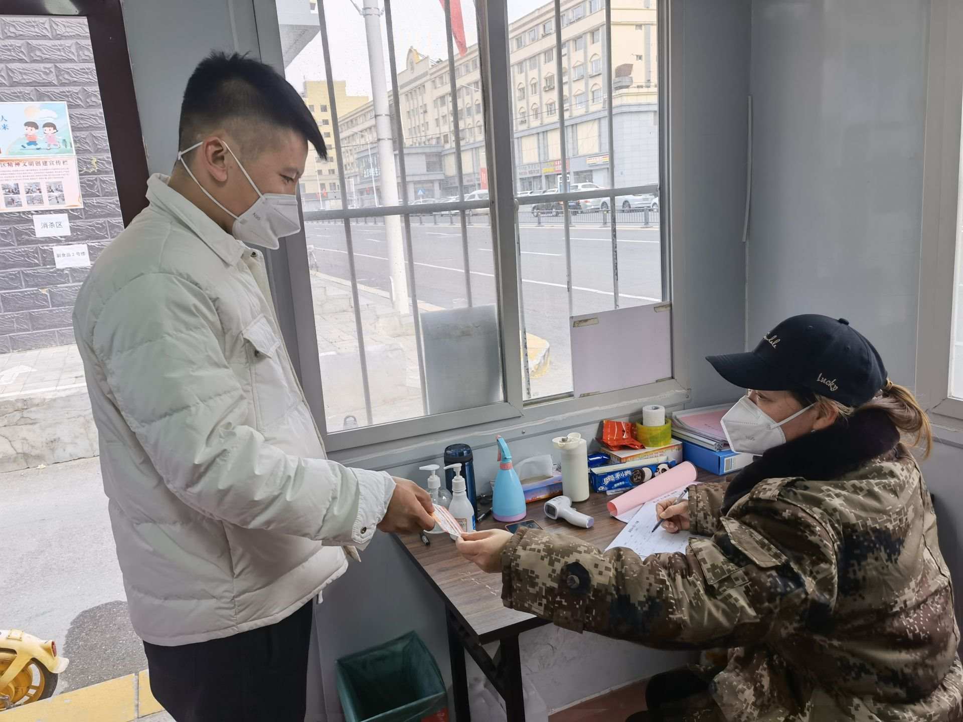 為給居民提供一個(gè)更放心的開放環(huán)境,在開放小區(qū)每個(gè)卡點(diǎn)、每個(gè)路口都有巡邏者,隨時(shí)提醒居民不能隨意進(jìn)出不安全區(qū)域。小區(qū)門口還設(shè)置了物品接收緩沖區(qū),所有物品都要在這里統(tǒng)一消毒后錯(cuò)峰領(lǐng)取。