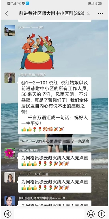疫情前,師大附中小區(qū)正在實(shí)施老舊小區(qū)改造工程,因疫情停工兩個(gè)月后,又重新開始施工,但因下水管道常發(fā)生堵塞,大家對(duì)工程質(zhì)量不太滿意。有居民在小區(qū)微信群里呼吁大家一起站出來(lái),阻止施工隊(duì)草率施工。而此時(shí)小區(qū)內(nèi),有一棟樓還處于疫情高風(fēng)險(xiǎn)封控狀態(tài),一旦出現(xiàn)人員聚集,后果不堪設(shè)想。