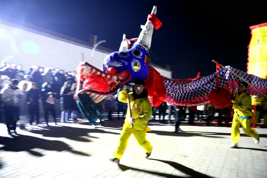 2月6日(農(nóng)歷正月十六)晚,黃河岸邊的古村落——呼和浩特市托克托縣雙河鎮(zhèn)河口村,一派熱鬧景象,當晚的社火舞龍表演,吸引了周邊眾多居民前來圍觀。