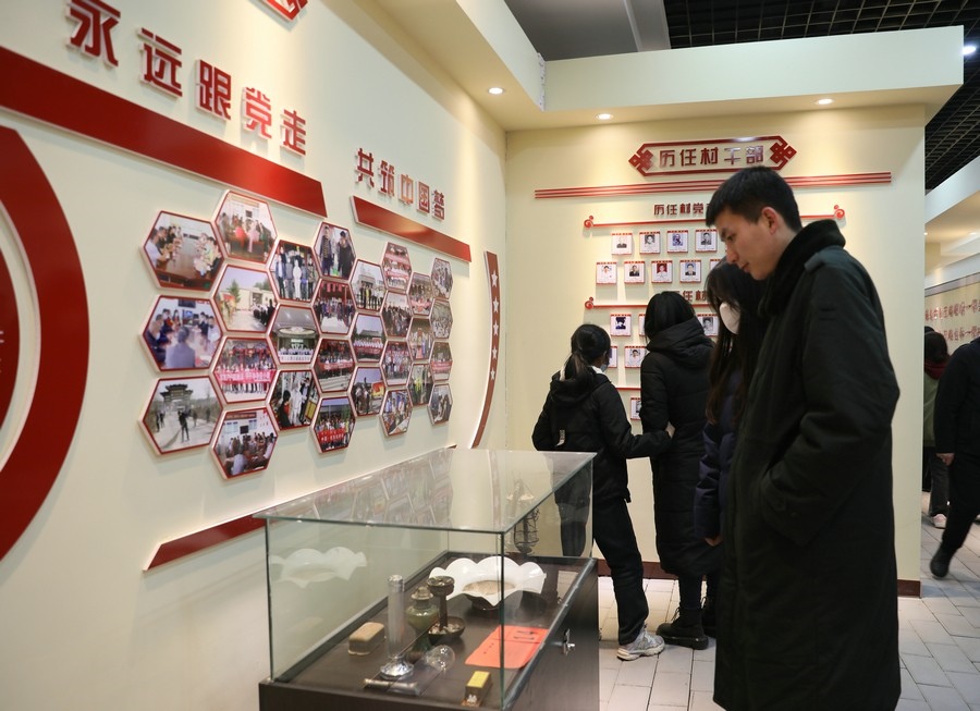 游客在村史館了解河口村的歷史變遷  記者 張楊攝影