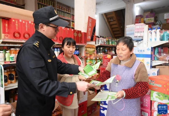 2月22日,在八里店鎮(zhèn)西山社區(qū),黨員志愿者和行政執(zhí)法隊(duì)員向沿街商戶(hù)發(fā)放垃圾分類(lèi)、沿街清運(yùn)的告知單。
