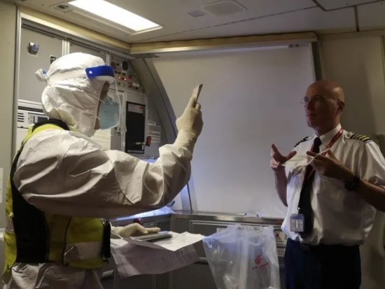 圖為譚家海在開展航班查驗(yàn)勤務(wù)。