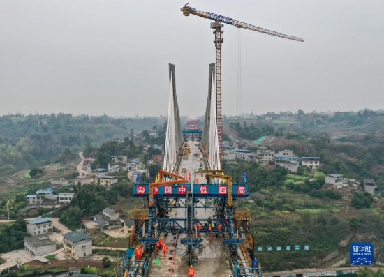 當日,由中鐵四局承建的渝昆高鐵川渝段控制性工程瀘州沱江特大橋主跨順利合龍,為全線順利貫通打下堅實基礎。