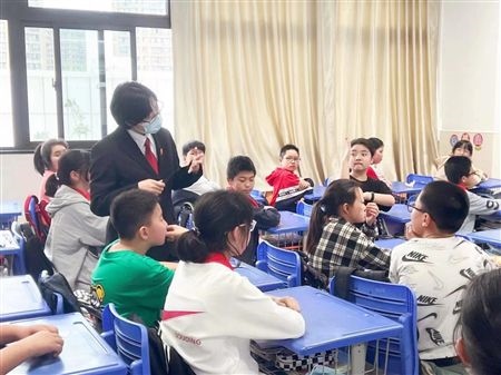溧陽法院緊跟時代發(fā)展步伐,將法治宣傳教育與“雙減”政策下的課后延時服務(wù)相結(jié)合,創(chuàng)新打造“延時‘法’課堂 護航‘他’成長”特色校園普法品牌,獲得了學生喜歡、家長滿意和老師認可。“法官老師”們每周一次走進延時課堂,2022年已累計授課180余節(jié),受眾師生超9000人次。