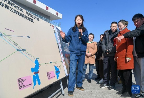 3月22日,在烏魯木齊水業(yè)集團(tuán)有限公司烏拉泊水庫管理站,工作人員給居民講解烏魯木齊飲用水的來源。