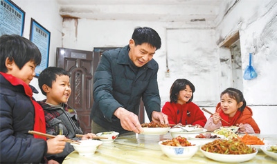 賴(lài)小田為孩子們準(zhǔn)備好飯菜。