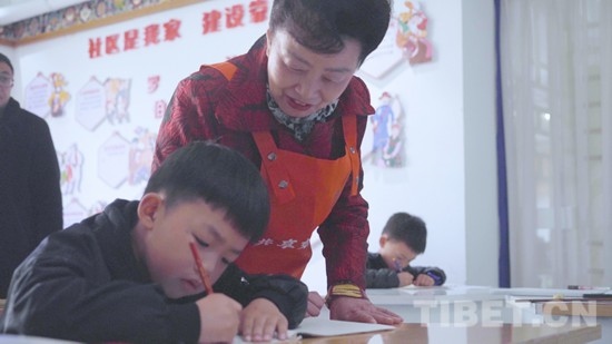 “這一筆要拉長,再拉長,對不對!”操著一口四川話的張惠英老人一邊把著孩子的手寫字,一邊微笑耐心地講解。在吉福社區(qū)的一間教室里,十來個(gè)孩子正在認(rèn)真地練寫漢字筆畫,而教他們書寫的張惠英并不是真正的教師,而是孩子們的“共享奶奶”。