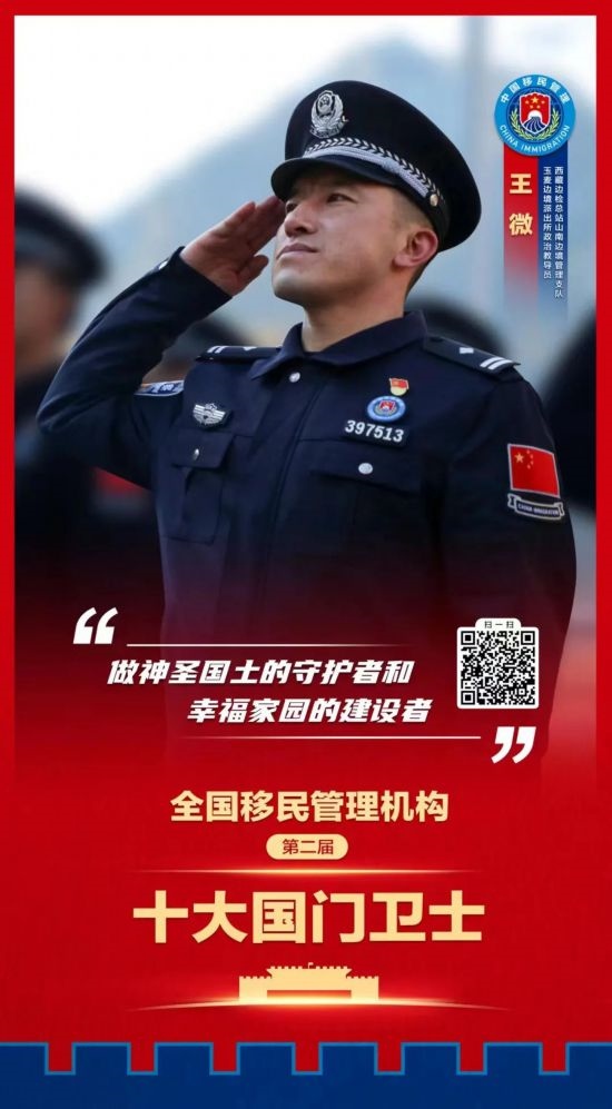 國(guó)家移民管理機(jī)構(gòu)十大國(guó)門衛(wèi)士每3年評(píng)選表彰一次,獲評(píng)人員是全國(guó)移民管理警察隊(duì)伍中政治立場(chǎng)堅(jiān)定、能力素質(zhì)過硬、工作實(shí)績(jī)卓著、紀(jì)律作風(fēng)優(yōu)良、模范作用顯著的先進(jìn)典型,是新時(shí)代移民管理警察的杰出代表。他們忠誠履職、無私奉獻(xiàn),在捍衛(wèi)國(guó)家政治安全、維護(hù)國(guó)門邊境穩(wěn)定、促進(jìn)經(jīng)濟(jì)社會(huì)發(fā)展過程中作出了突出貢獻(xiàn),生動(dòng)反映了國(guó)家移民管理體制改革的豐碩成果,展示了移民管理警察良好精神風(fēng)貌,展現(xiàn)了移民管理機(jī)構(gòu)新形象、新作為。