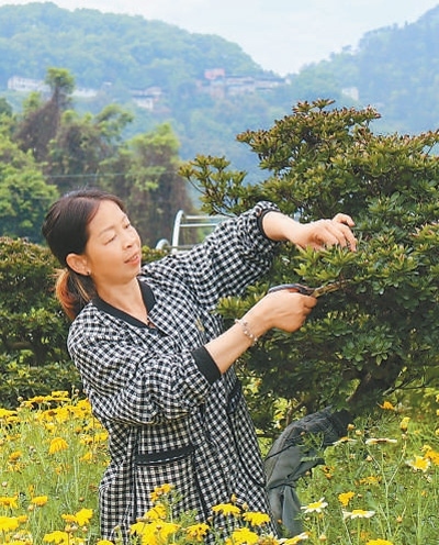 “家家擺盆景,人人學(xué)手藝?!比缃?,雙龍村花木盆景產(chǎn)業(yè)種植規(guī)模擴(kuò)大到了2000余畝,年產(chǎn)值達(dá)2000萬(wàn)元。在此基礎(chǔ)上,當(dāng)?shù)剡M(jìn)一步發(fā)展鄉(xiāng)村旅游產(chǎn)業(yè),特色民宿如雨后春筍,雙龍村“山城花冠”的名聲也越叫越響,不僅讓村民在家門口就能就業(yè)、吸引不少在城區(qū)務(wù)工的村民返鄉(xiāng)創(chuàng)業(yè),還改善提升了當(dāng)?shù)氐幕A(chǔ)設(shè)施建設(shè)水平、林地覆蓋面積,實(shí)現(xiàn)了生產(chǎn)、生活、生態(tài)的多贏,走出一條以綠色產(chǎn)業(yè)助力鄉(xiāng)村振興的發(fā)展新路。