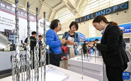 5月8日,在國(guó)家會(huì)展中心(天津),觀眾參觀展會(huì)上展出的工業(yè)設(shè)備。