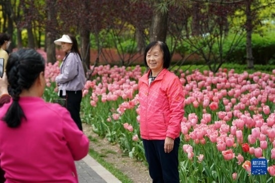 近日,山西省太原市迎澤公園內(nèi)各色郁金香競(jìng)相綻放,吸引游人前來觀花賞景。