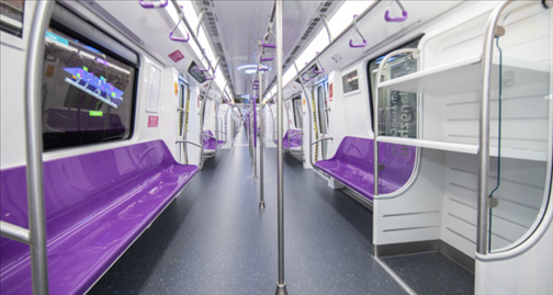 杭州4輛亞運(yùn)主題包車分別位于1號(hào)線、2號(hào)線、4號(hào)線、5號(hào)線4條地鐵客流最大的線路,以亞運(yùn)“潤澤”系統(tǒng)的紫色系和青色系為主色調(diào),打造沉浸式亞運(yùn)氛圍。