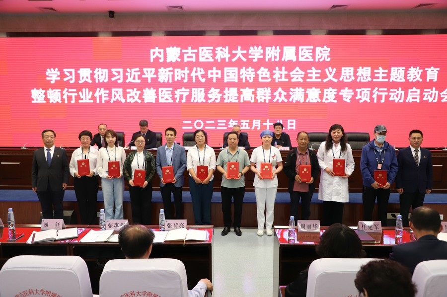 啟動會上,內(nèi)蒙古醫(yī)科大學黨委委員、附屬醫(yī)院黨委書記張立東,醫(yī)院黨委委員、紀委書記劉玉龍與專項行動工作小組組長簽訂責任狀,并為10名社會監(jiān)督員頒發(fā)聘書。
