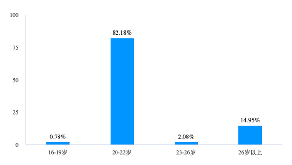 同樣,由于需要一天內(nèi)打卡多個甚至十幾個景點、為了節(jié)省成本而大量采取步行和騎行的“特種兵旅游”需要大量體力,因此集中在年輕人群,調(diào)查結(jié)果顯示有82.18%受訪者年齡段集中在20~22歲,可見大學(xué)生人群是對“特種兵旅游”感興趣和參與的主力。