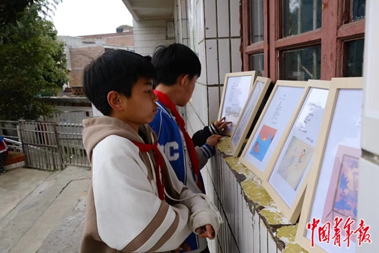 在這里,詩可能隨時誕生,也可能隨時消亡:有的孩子的詩歌本被爺爺點煙時燒了;有的孩子本子掉在地上忘記撿,被其他同學(xué)掃進(jìn)了垃圾桶。曾經(jīng)有場暴風(fēng)雨吹開老舊的木門,把貼在圖書室后墻的詩全打濕。