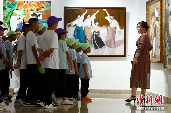 圖為藏族青少年們參觀美術(shù)館。富田攝