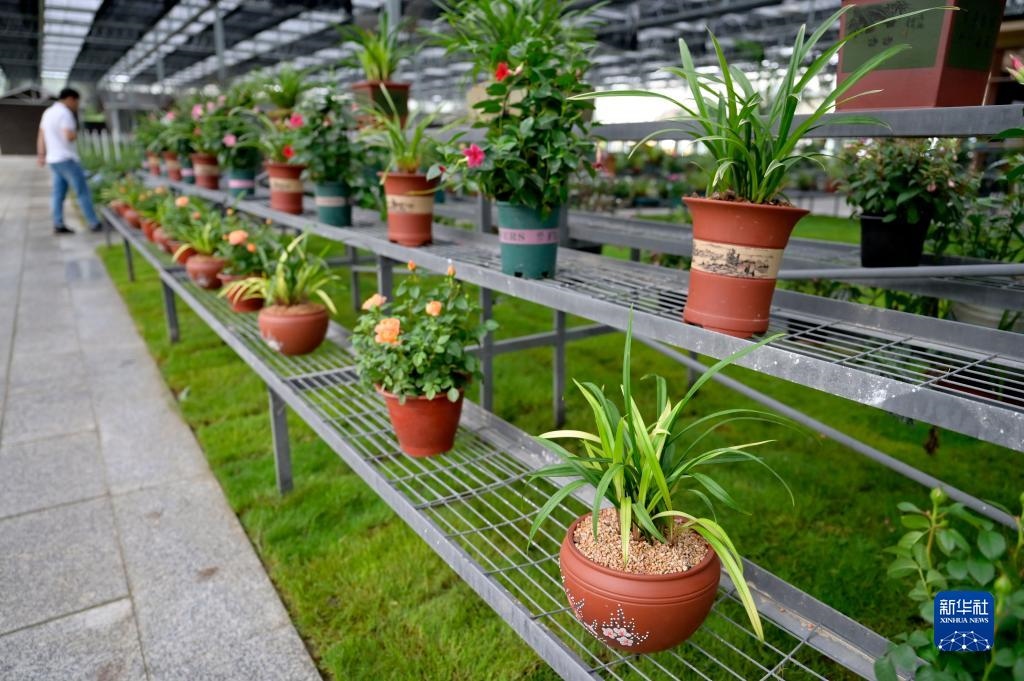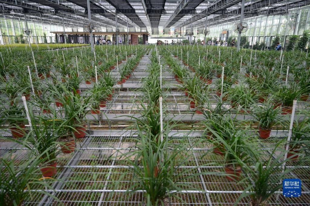 6月8日在浙江省紹興市柯橋區(qū)漓渚鎮(zhèn)棠棣村拍攝的蘭花數(shù)字工廠一景。新華社記者 才揚 攝