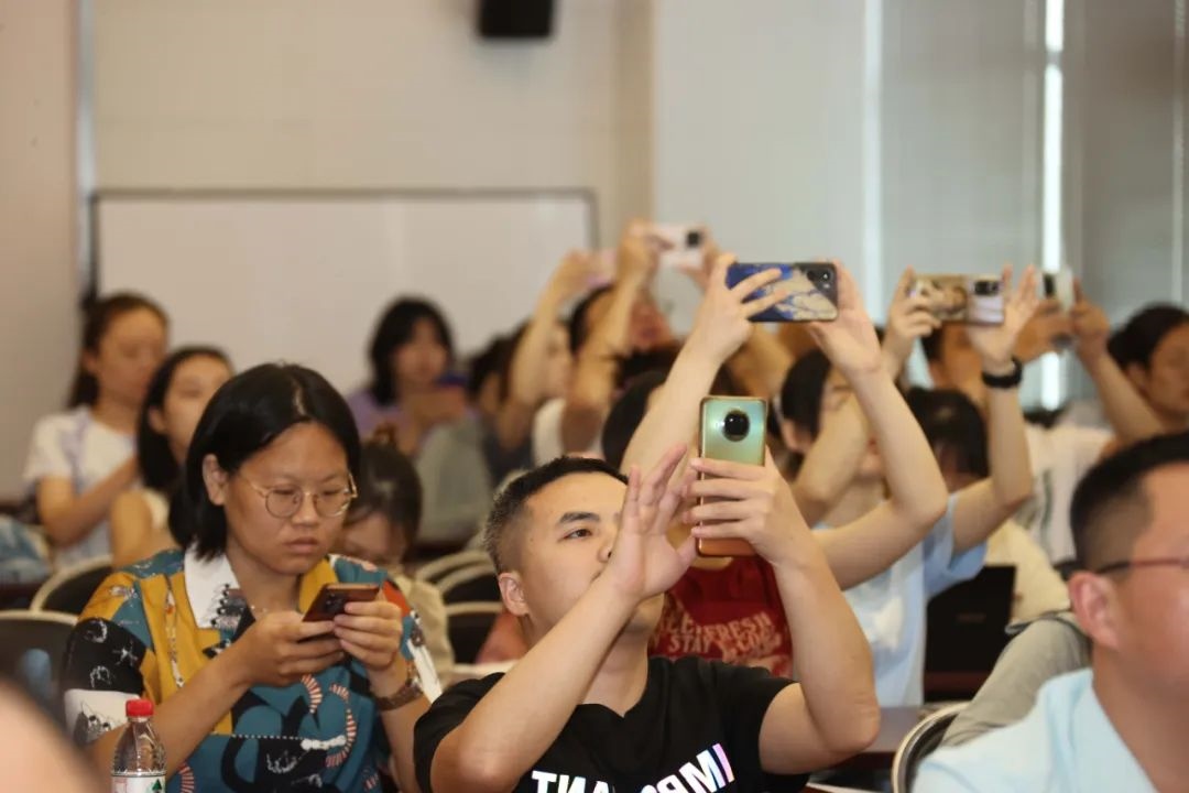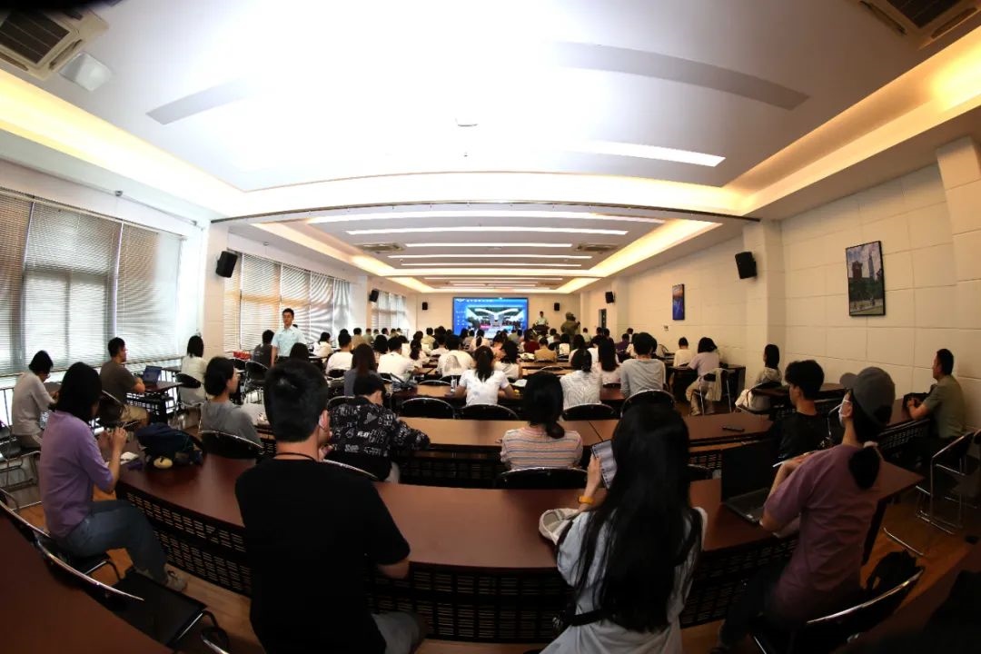 活動(dòng)中,盡管教室內(nèi)溫度很高,可沒有一名學(xué)生中途離開。一名站在過道處聽講的學(xué)生差點(diǎn)暈倒,工作人員把他扶到空調(diào)處休息了一會(huì),感覺好點(diǎn)后,他又繼續(xù)站在人群中聽講。