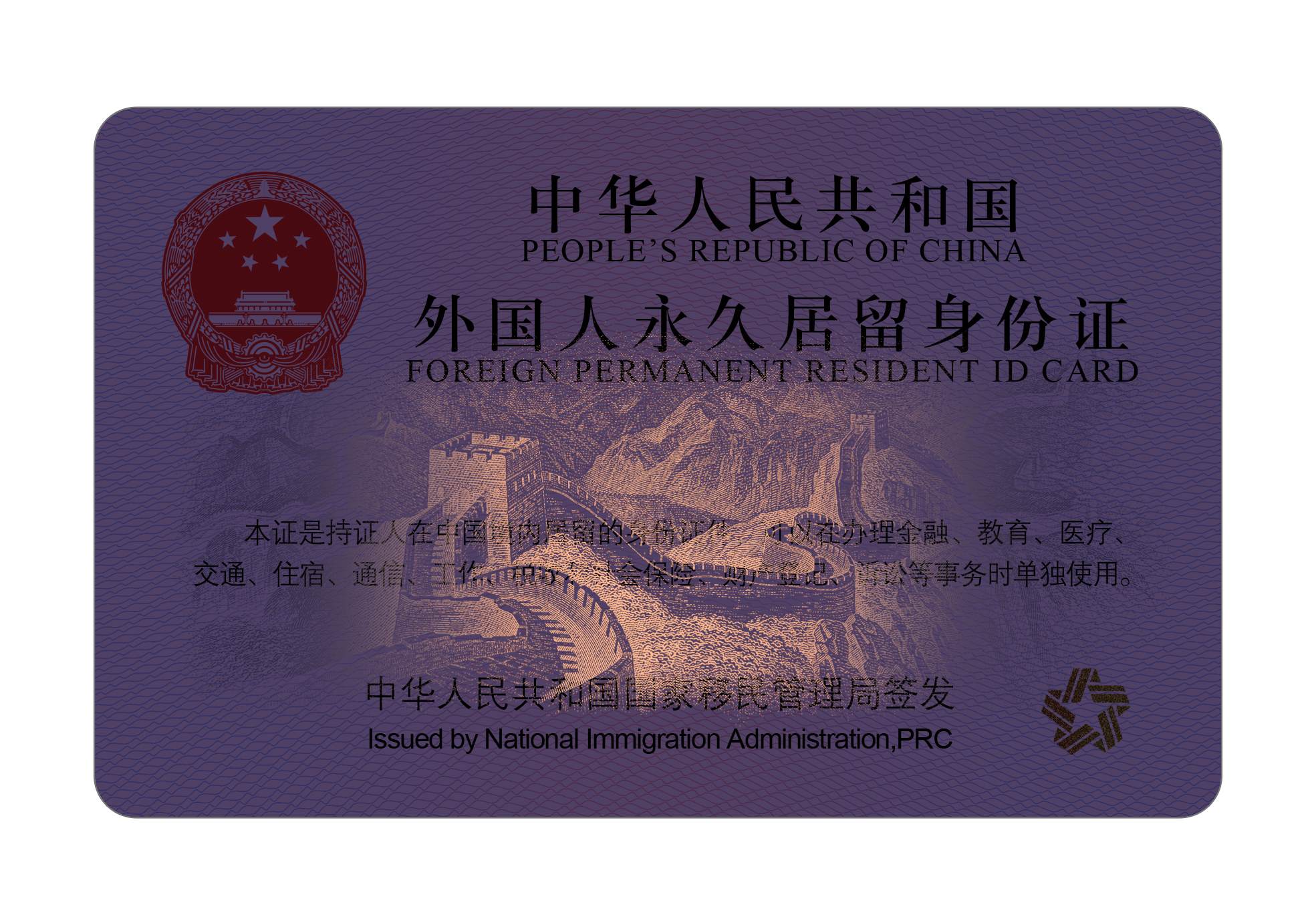 永居證是國(guó)家移民管理局對(duì)符合條件的外國(guó)人批準(zhǔn)其在境內(nèi)永久居留后,為其簽發(fā)的法定身份證件。該證作為個(gè)人身份證件可單獨(dú)使用,持證人可在住宿登記、購(gòu)買車(船、機(jī))票等需要證明個(gè)人身份的場(chǎng)合作為合法憑證,無(wú)須再出示其外國(guó)護(hù)照。