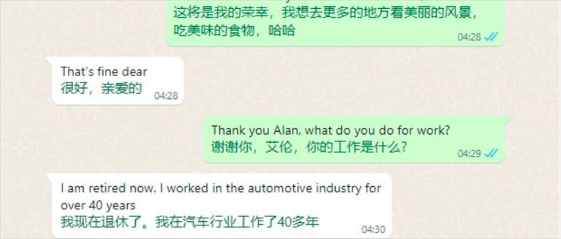 “通過對方發(fā)來的照片可以觀察他居住的環(huán)境、開的車等等,判斷他有沒有錢,沒有錢就直接丟掉不聊了。詐騙團(tuán)伙里的組長、團(tuán)長或者是其他騙到很多錢的人,也會分享自己聊天經(jīng)驗(yàn),告訴我們有哪些地方需要改進(jìn)。”