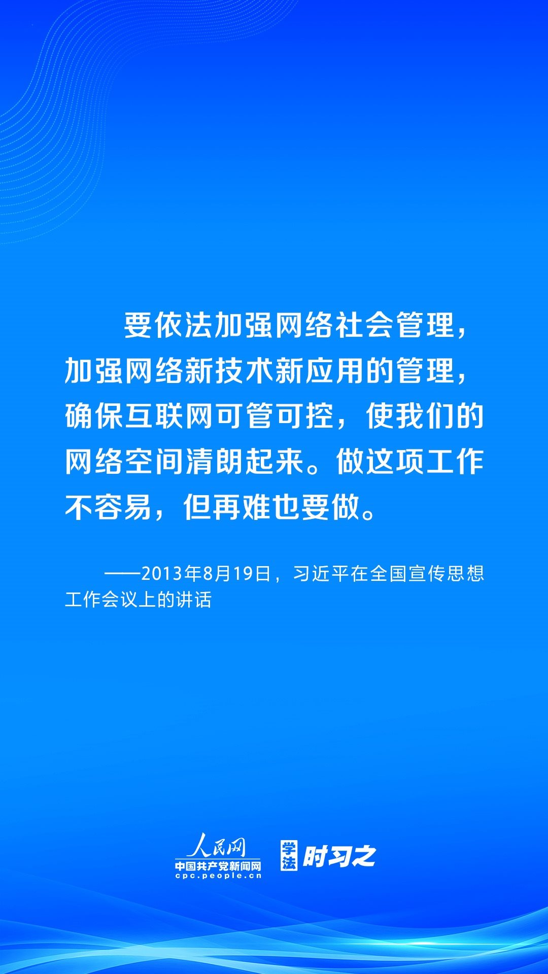 營(yíng)造風(fēng)清氣正的網(wǎng)絡(luò)空間,離不開(kāi)法治手段的保障。黨的十八大以來(lái),習(xí)近平總書(shū)記高度重視網(wǎng)絡(luò)法治工作,強(qiáng)調(diào)要堅(jiān)持依法治網(wǎng)、依法辦網(wǎng)、依法上網(wǎng),讓互聯(lián)網(wǎng)在法治軌道上健康運(yùn)行。