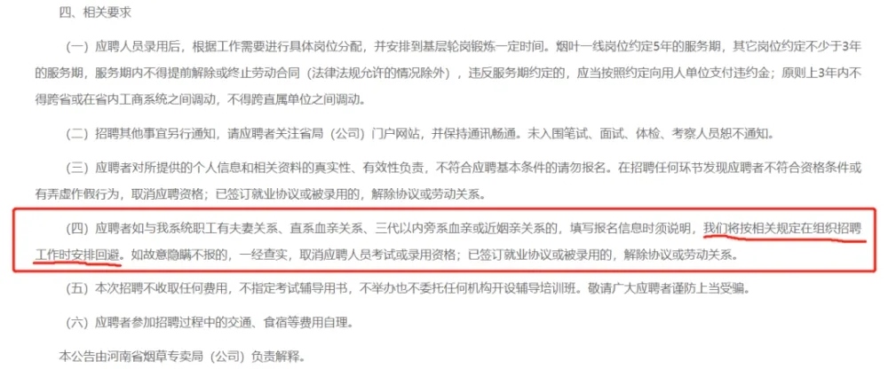 有媒體就此梳理發(fā)現(xiàn),全國多個地方的煙草局和煙草公司在招聘中,均提出該要求。其實,翻看近些年各地煙草局的招聘信息可以發(fā)現(xiàn),列明回避制度是一個常規(guī)操作。上述規(guī)定出自《國家煙草專賣局中國煙草總公司關(guān)于印發(fā)煙草行業(yè)招聘工作管理辦法的通知》第十一條,早就存在,且非常明確。
